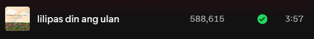 My latest single (the single before this) is called lilipas din ang ulan (the rain too shall pass). It has around 580,000 streams on Spotify, and it’s increasing and increasing.
